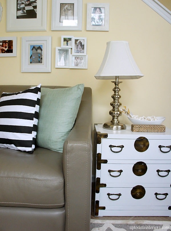 For the second look, I wanted to take away the purple and green and add boldness with black and white. I switched out the lamps and tried my new pillow covers.